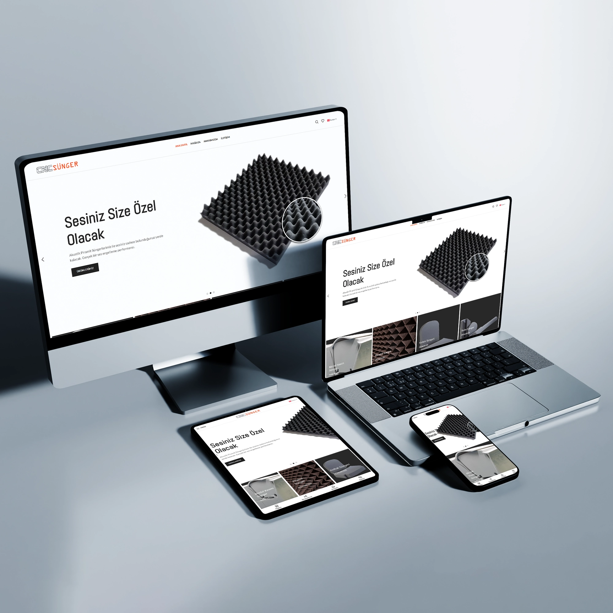Site menüsü sade ve yalın; ana sayfada ürün kategorileri veya hizmet başlıkları hızlıca görülebiliyor. Bu yapı, ziyaretçinin aradığı sünger türüne veya CNC kesim hizmetine çabuk ulaşmasını kolaylaştırıyor.